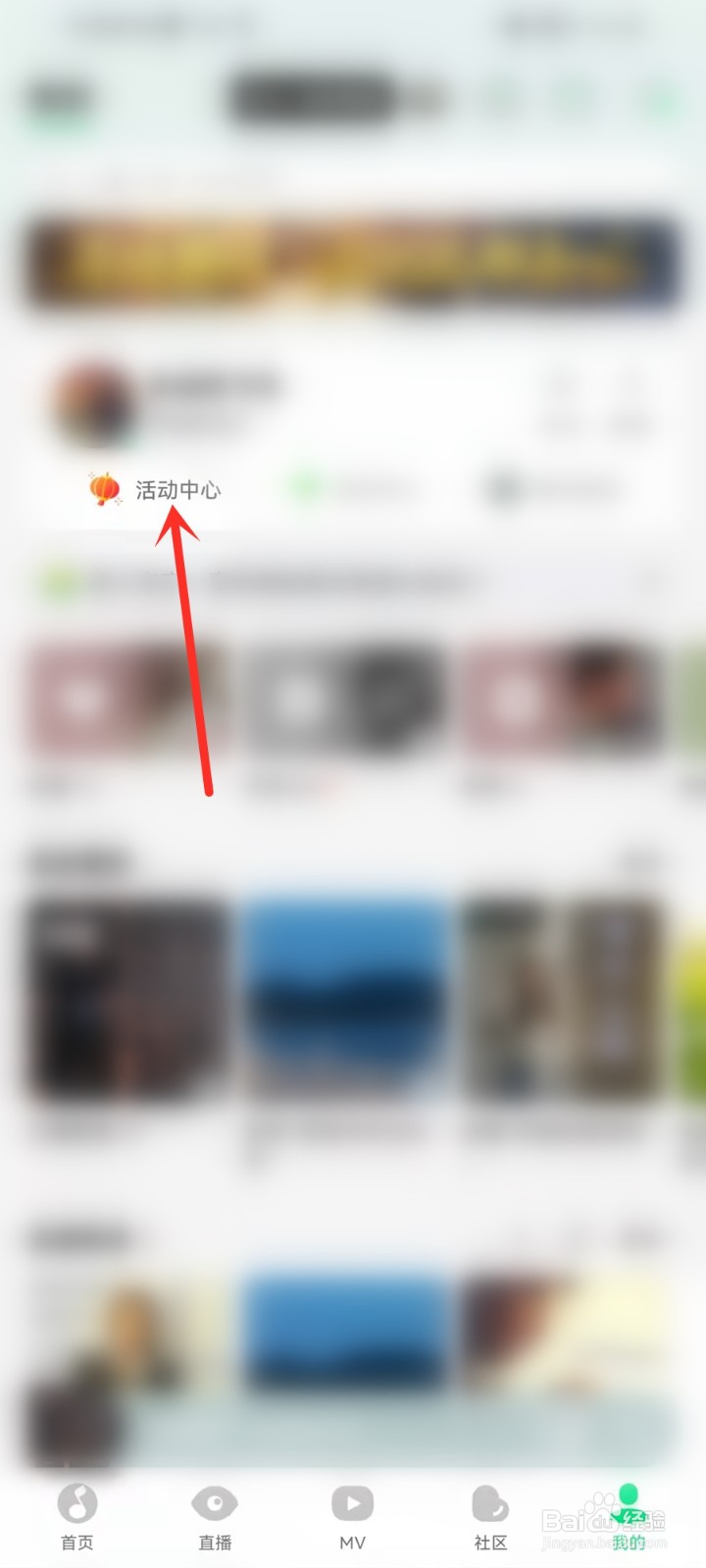 打开qq音乐,进入我的界面,点击“活动中心”。