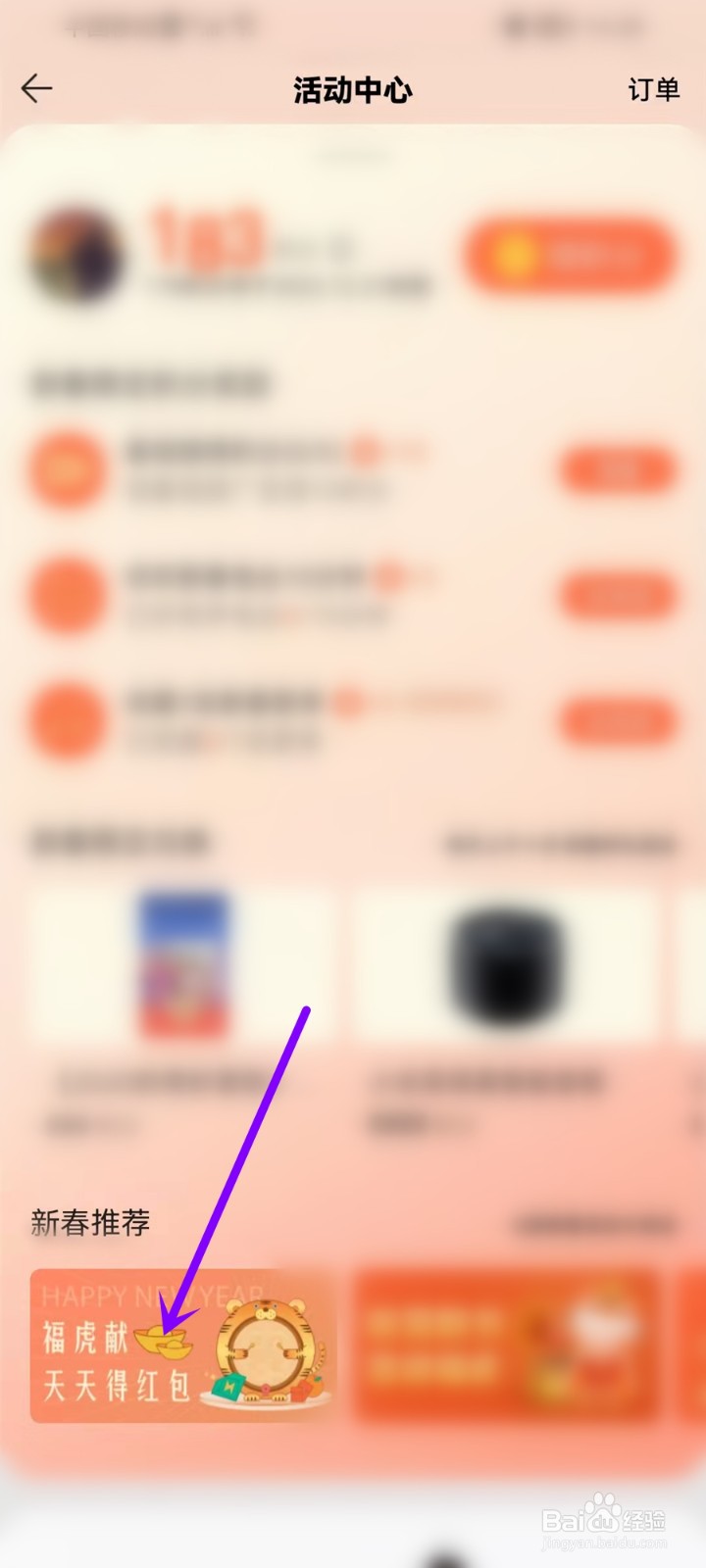 下拉页面找到活动入口,点击进入。