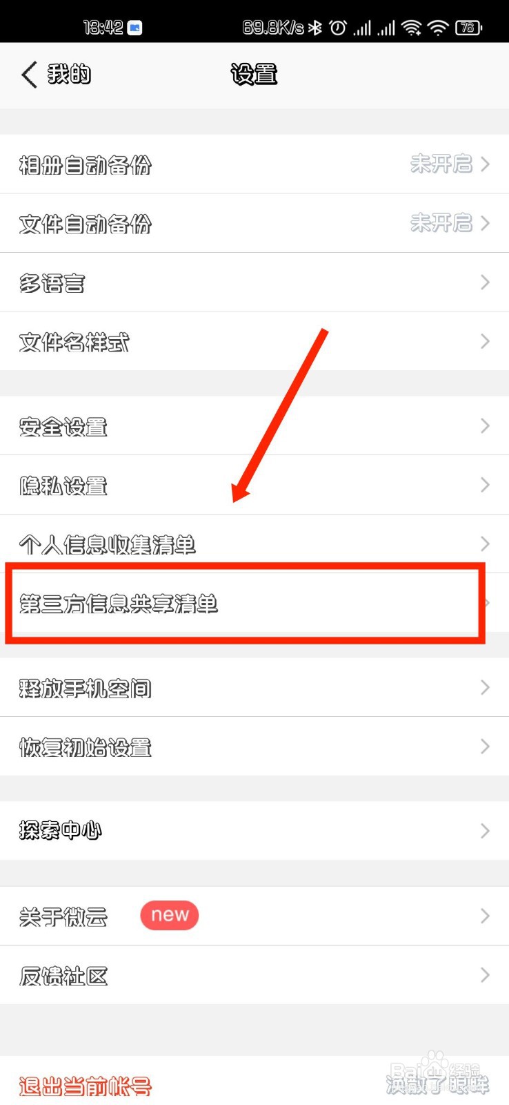 [图]3/3第三步在设置界面中点击第三方信息共享清单就可以看到了。