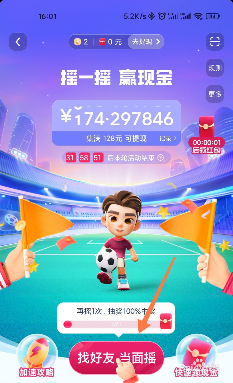 在抖音世界杯中找到摇红包。