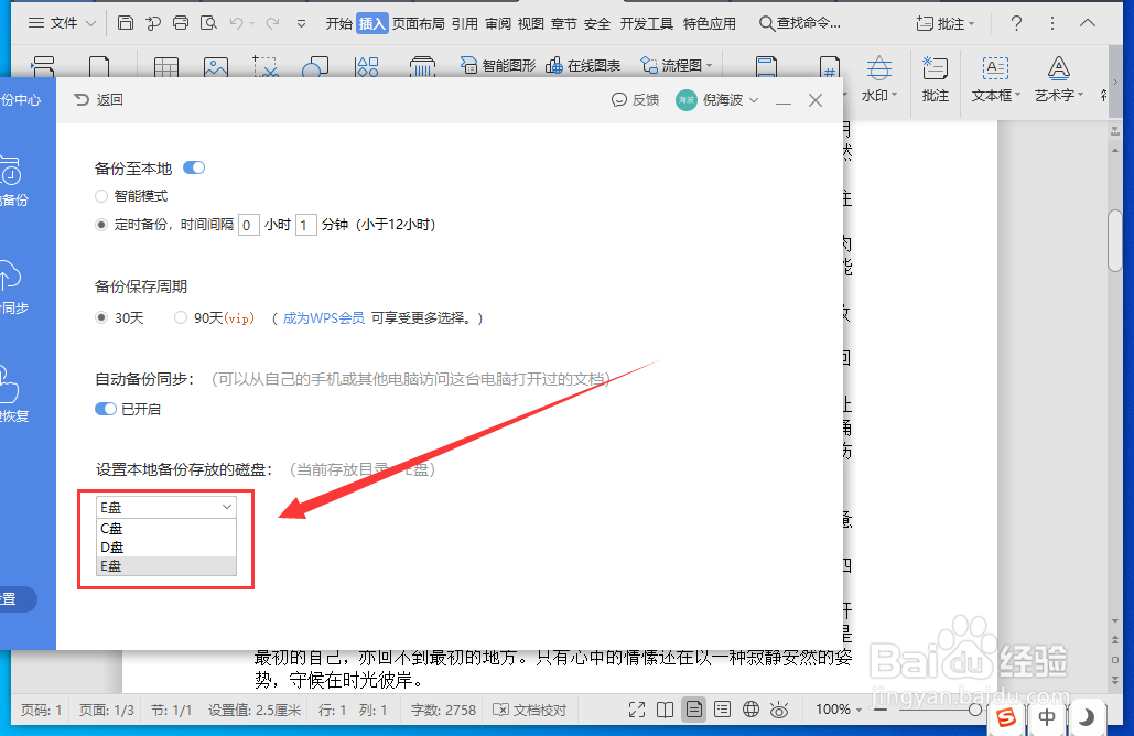 [图]5/5然后在右侧栏“设置本地备份存放的磁盘”中选择一个存放位置即可。