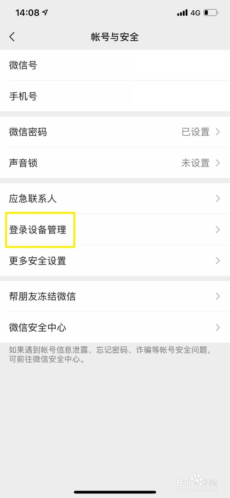 在帐号与安全的主页面中,点击进入登录设备管理选项。