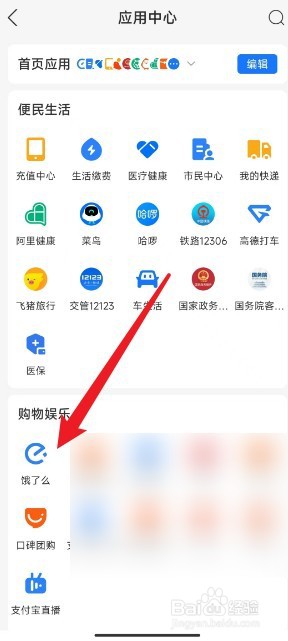 [图]2/3进入应用中心页面,点击左下角【饿了么】
