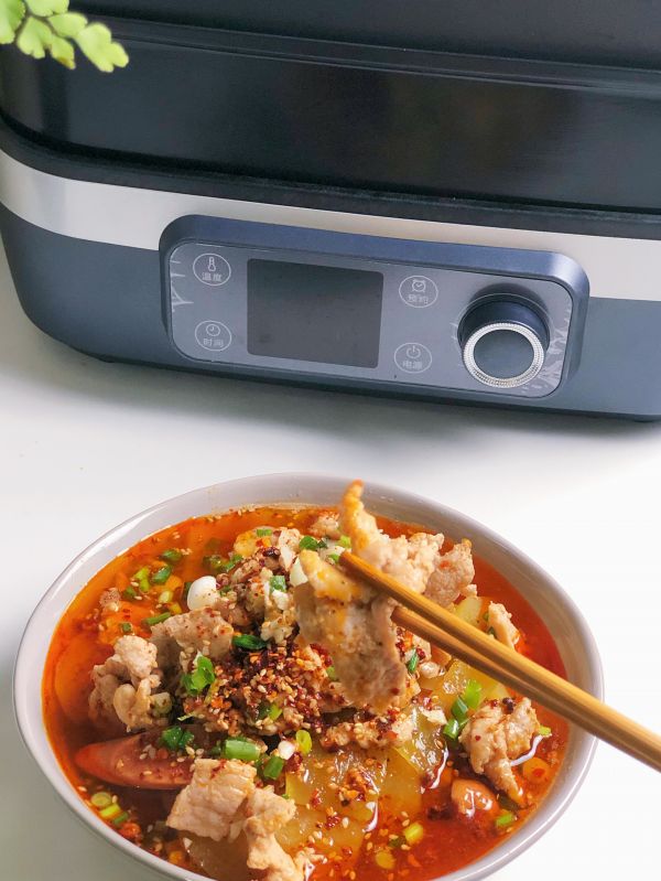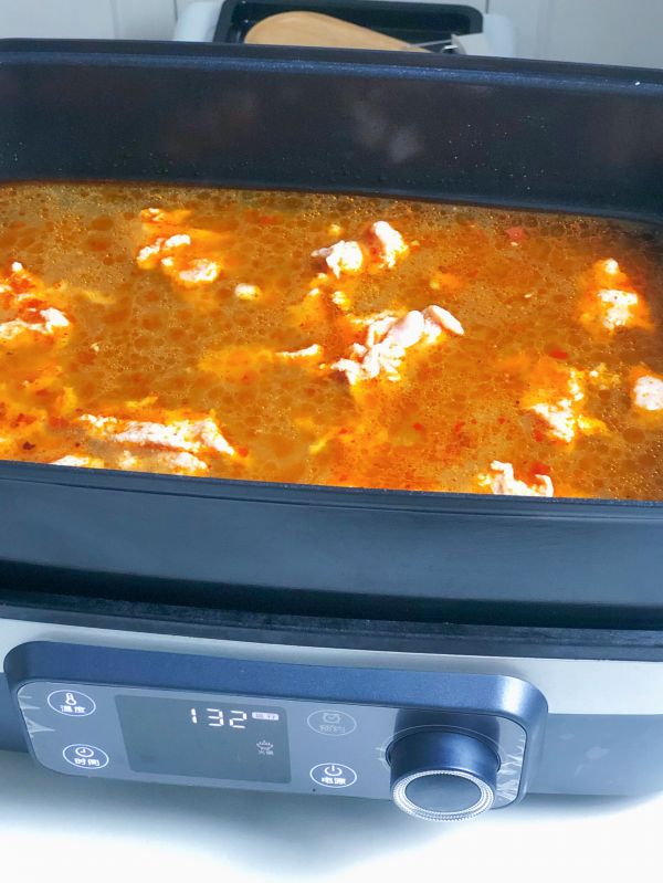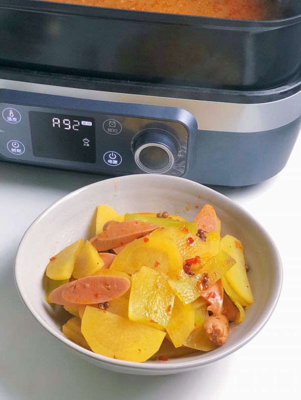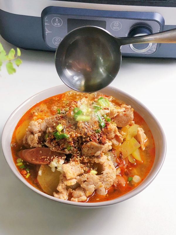 今天分享一道家庭版水煮肉片,做法简单、鲜香嫩滑,味道一点不比外面差!食材:猪里脊肉1块|土豆1个|莴笋半根|香肠2根|葱2根|蒜末适量|辣椒粉适量|白芝麻适量汤底:火锅底料1小块|盐1勺|生抽1勺|老抽1勺|浓汤宝一块腌肉调料:盐1小勺|胡椒粉1小勺|料酒1勺|生粉1勺做法:1⃣️猪里脊切成片后,放入清水中洗去血水,再挤干水份,加1小勺盐、胡椒粉和1勺生粉、1勺料酒抓匀后淋少许食用油锁住水分。2⃣️将土豆、莴笋、香肠分别切成片备用!再准备好葱花、蒜末、白芝麻、辣椒粉。3⃣️宜盾普多功能锅加入适量清水,再加入火锅底料和浓汤宝烧开。4⃣️捞出锅里的底料残渣,放入切好的配菜,煮熟后捞出码在盘底。5⃣️再将腌好的猪肉一片片放入锅中,等猪肉外面的包浆定型后再轻微的翻动。6⃣️煮熟的猪肉捞出放在配菜的上面,将提前备好的葱花,蒜末、辣椒粉、白芝麻撒在上面,淋上一瓢热油激发香气!该文章来自豆果美食达人作者琳哒琳哒工具/原料