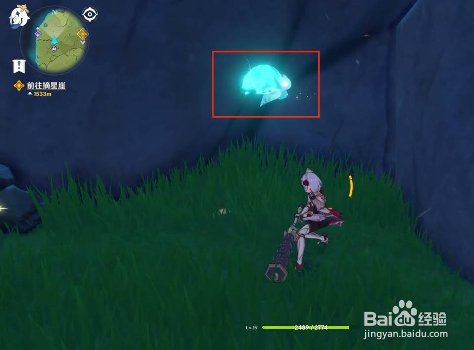 进入游戏打开地图,我们先来到任务地点。如图所示,打掉堆叠的石头即可找到机关1;打掉右前方三个丘丘人找到机关2。