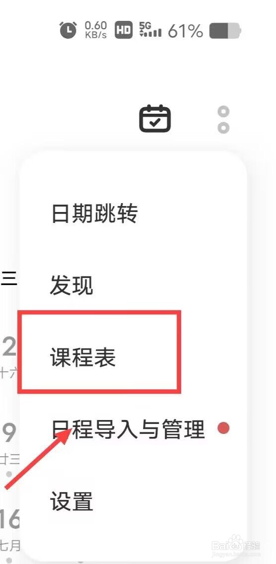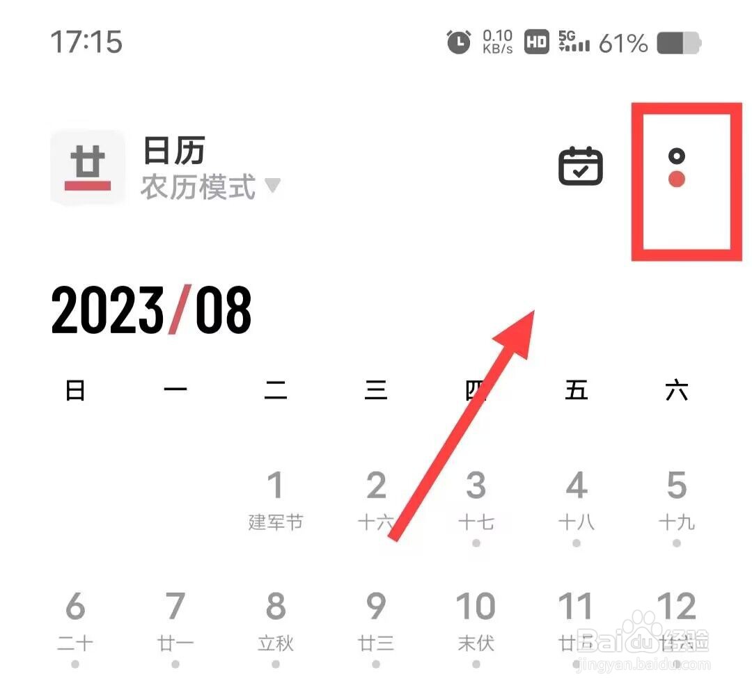 1/3分步阅读第一步,进入到日历的界面,点击右上角的两个点。