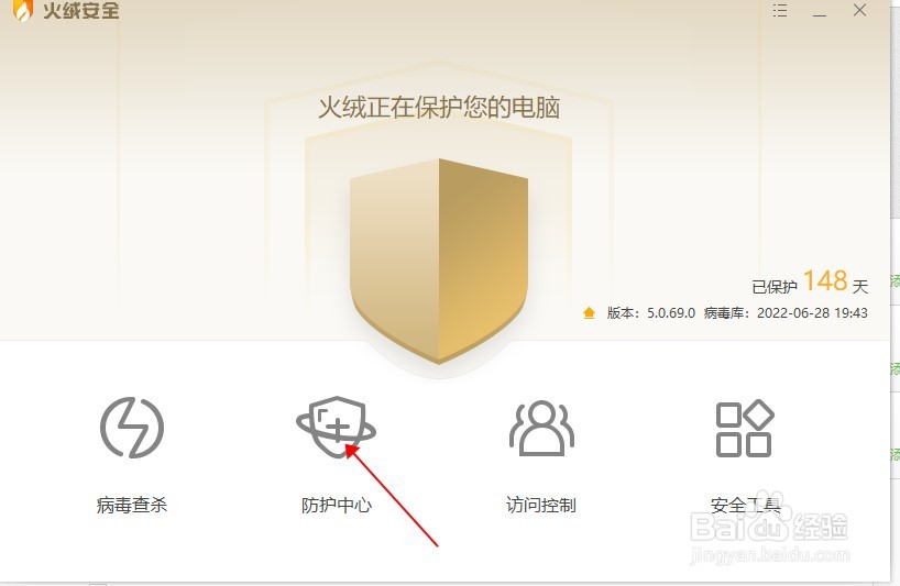 [图]2/5进入主页面,点击第二个防护中心。