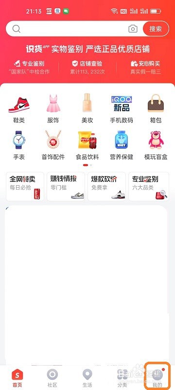 1/4分步阅读打开识货APP以后,点击【我的】。