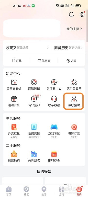 [图]2/4切换到我的页面以后,点击【兼职招聘】。