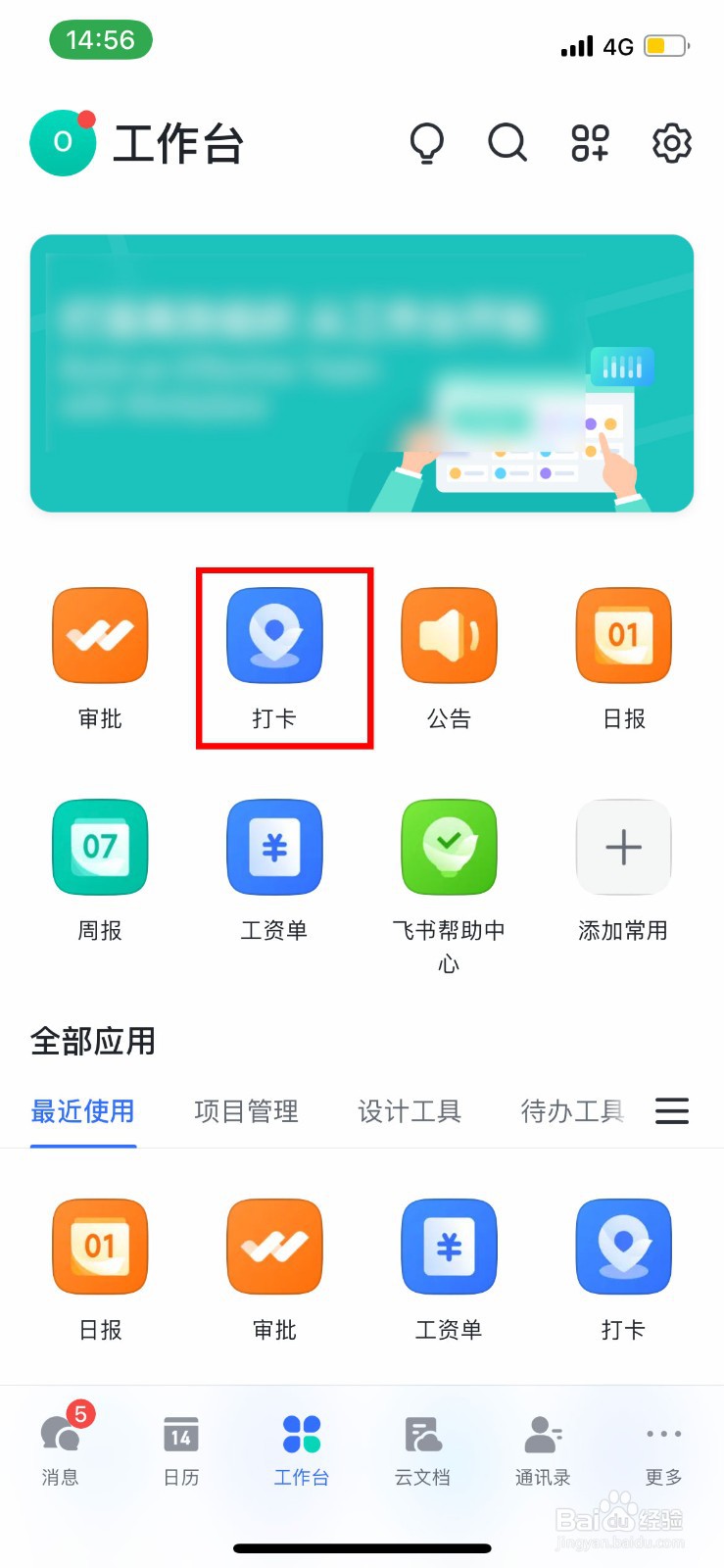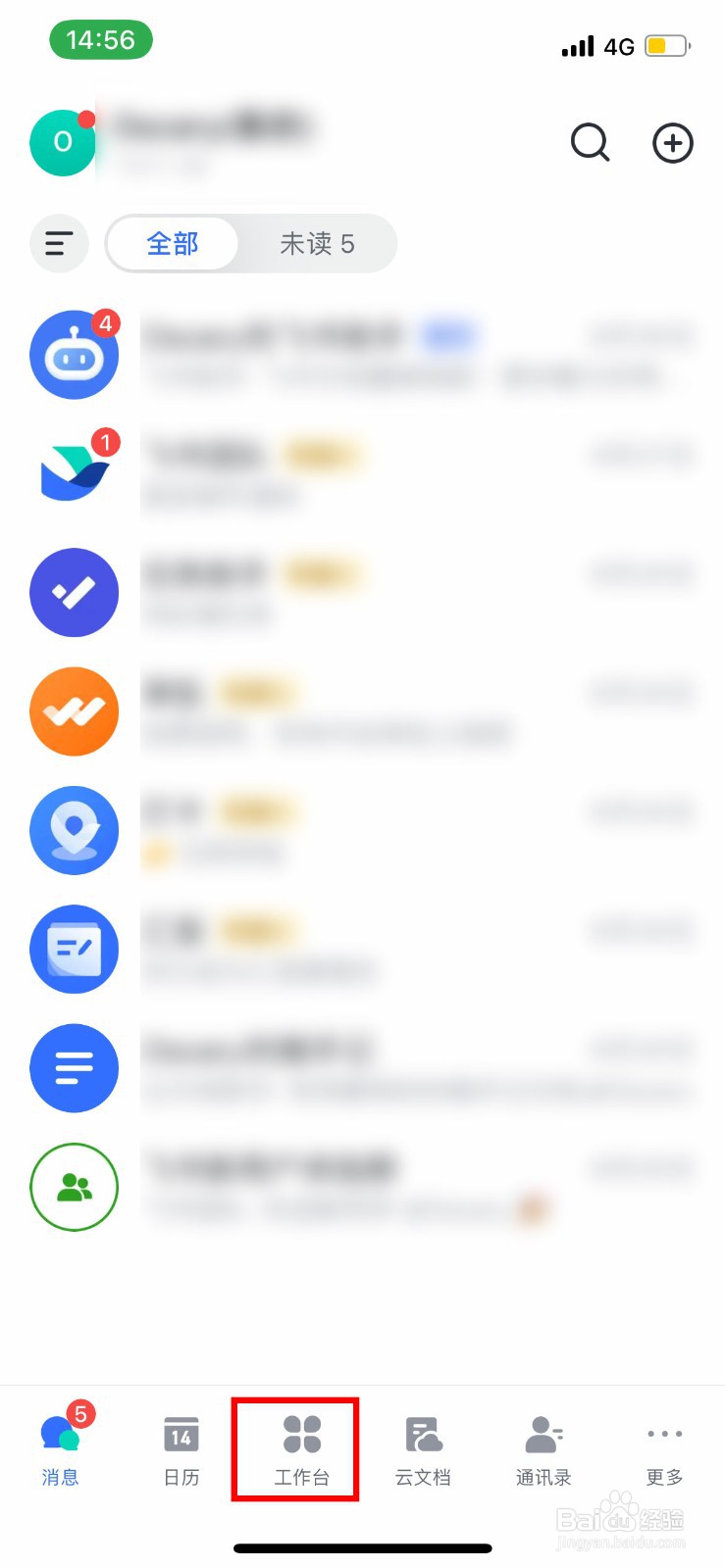 打开飞书,点击底部的【工作台】。