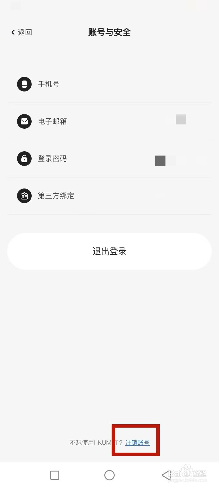 1/3分步阅读手机打开I KUMI软件,点击右下角我的,选择账号与安全项目。