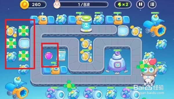 [图]2/3第2-6波,造月亮塔,再造两个电磁武器,最右边造炮塔。