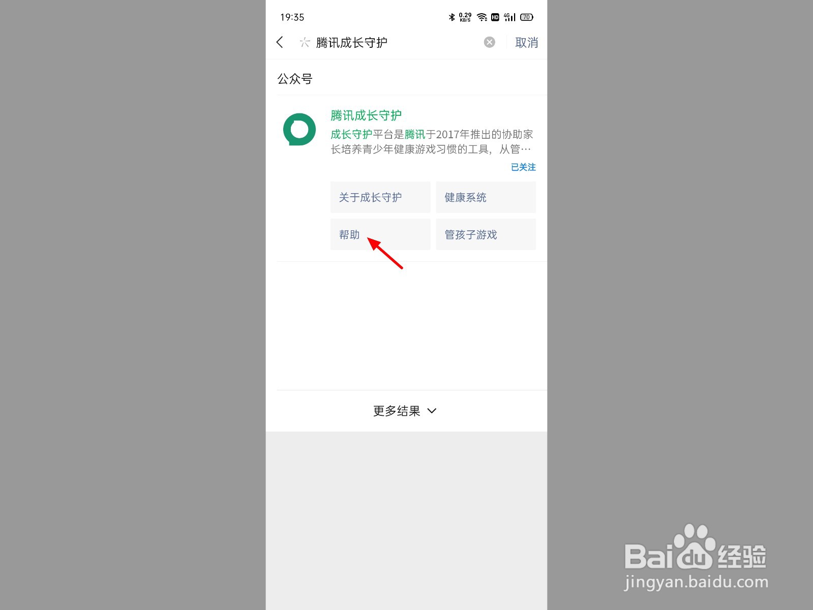 在搜索栏输入关键词腾讯成长守护,点击帮助。