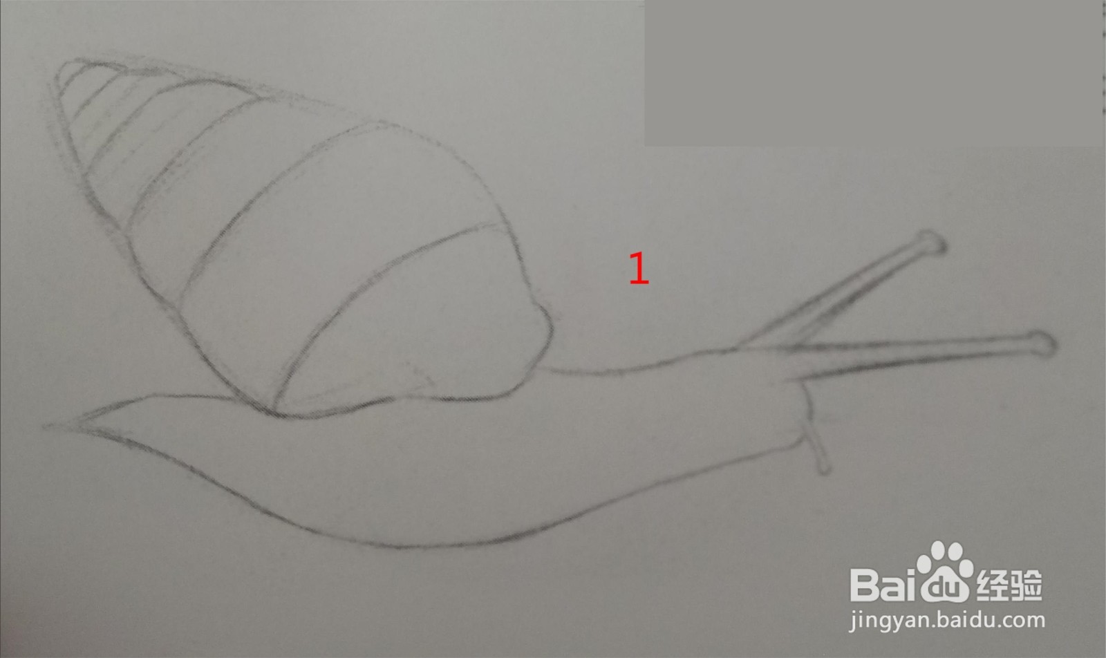 1/5分步阅读步骤1:先把蜗牛的的身体和蜗牛壳概括成菱形和三角形,确定它们的大小和位置,然后用流畅的线条画出各部分的线稿,注意不要画得太重。如下图所示