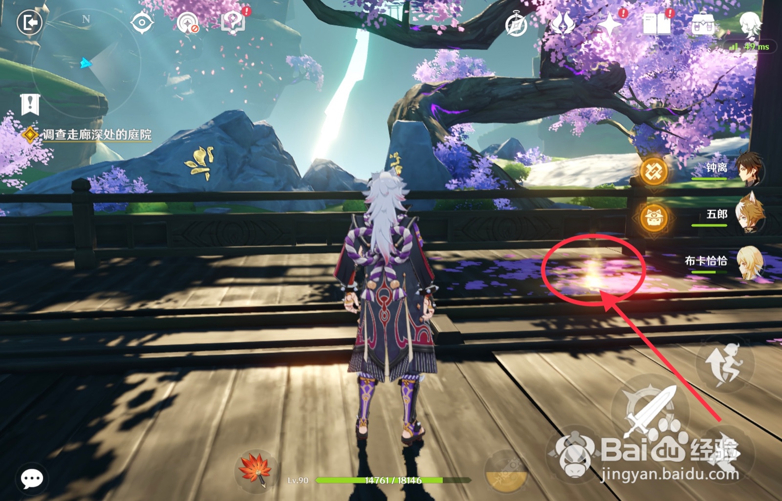 1/3分步阅读首先,来到庭院露台,找到右侧发光点。